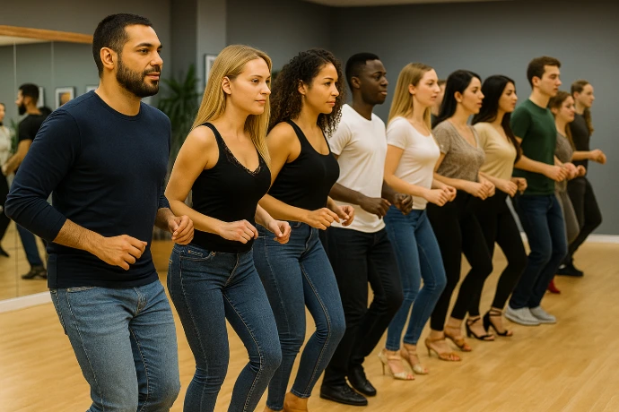 Danse cubaine dynamique en groupe, la Rueda de Casino vous fait changer de partenaire au rythme des appels. Vous y développerez coordination, synchronisation et esprit d’équipe, tout en apprenant des mouvements ludiques et impressionnants. Une expérience sociale, festive et pleine d’énergie !